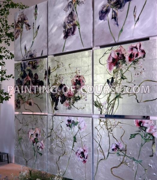 Last summer I visited an exhibition of Claire Basler. Her castle Chateau Beauvoir in Echassières in France was opened to visitors. She paints the walls of her rooms and puts huge bouquets of flowers in front of those paintings. This gives